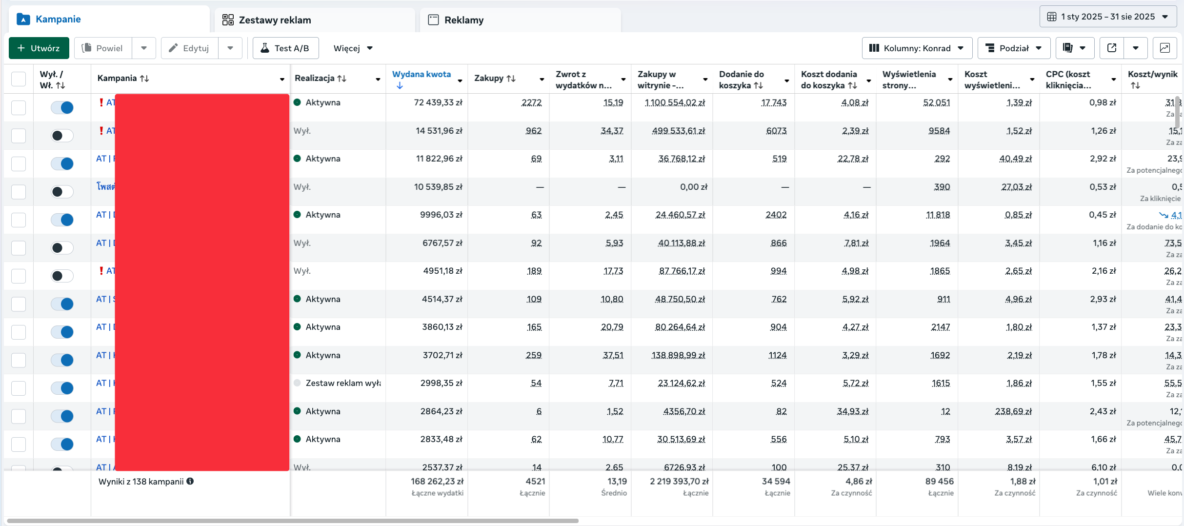 168 tys zł zainwestowane w reklamy co dało 2,2 mln zł sprzedaży